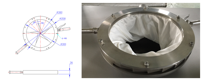 虹膜閥由兩個(gè)連有柔性袖筒同心圓環(huán)組成,袖筒的一頭與內(nèi)環(huán)相連,另一頭與外部控制環(huán)相連??刂骗h(huán)上安裝有手柄,手柄可以180度旋轉(zhuǎn)。通過旋轉(zhuǎn),袖筒被扭曲成松、緊合完全閉合等狀態(tài)。