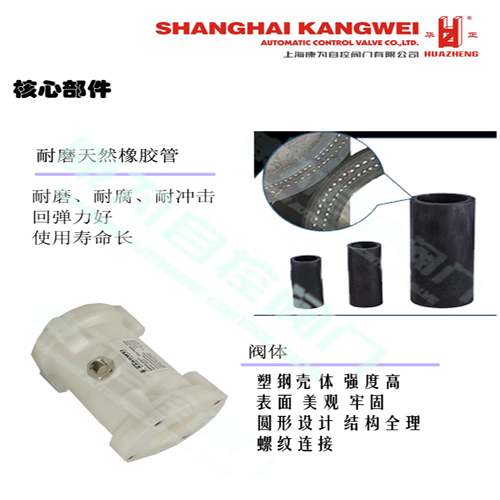 膠管閥別名管夾閥或夾管閥,KMP系列緊湊型氣動膠管閥可靠而經(jīng)濟,節(jié)約安裝空間,耗氣量小,可用于關斷粉塵顆粒、粉劑、懸浮液、污水、排氣等。